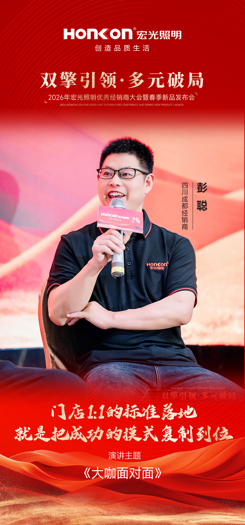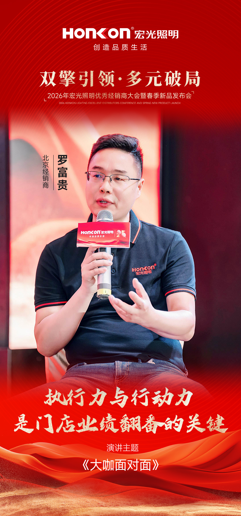 与此同时,黄董强调,以“多元风格+全价位覆盖”的产品矩阵夯实增长底盘,形成从现代灯、商照、宏光智能,到意式风、中古风、奶油风、宏光臻选、全光谱等系列的完整阵容,覆盖高中低全价格梯度,以全场景、全需求的供给能力满足不同客群的选择。以“整店布局”的思维做产品组合与陈列规划,让产品矩阵成为门店差异化的关键抓手,持续带动业绩自然增长;同时也要求经销商紧跟总部节奏、同频共振,把总部的产品与策略优势更快转化为终端战斗力。