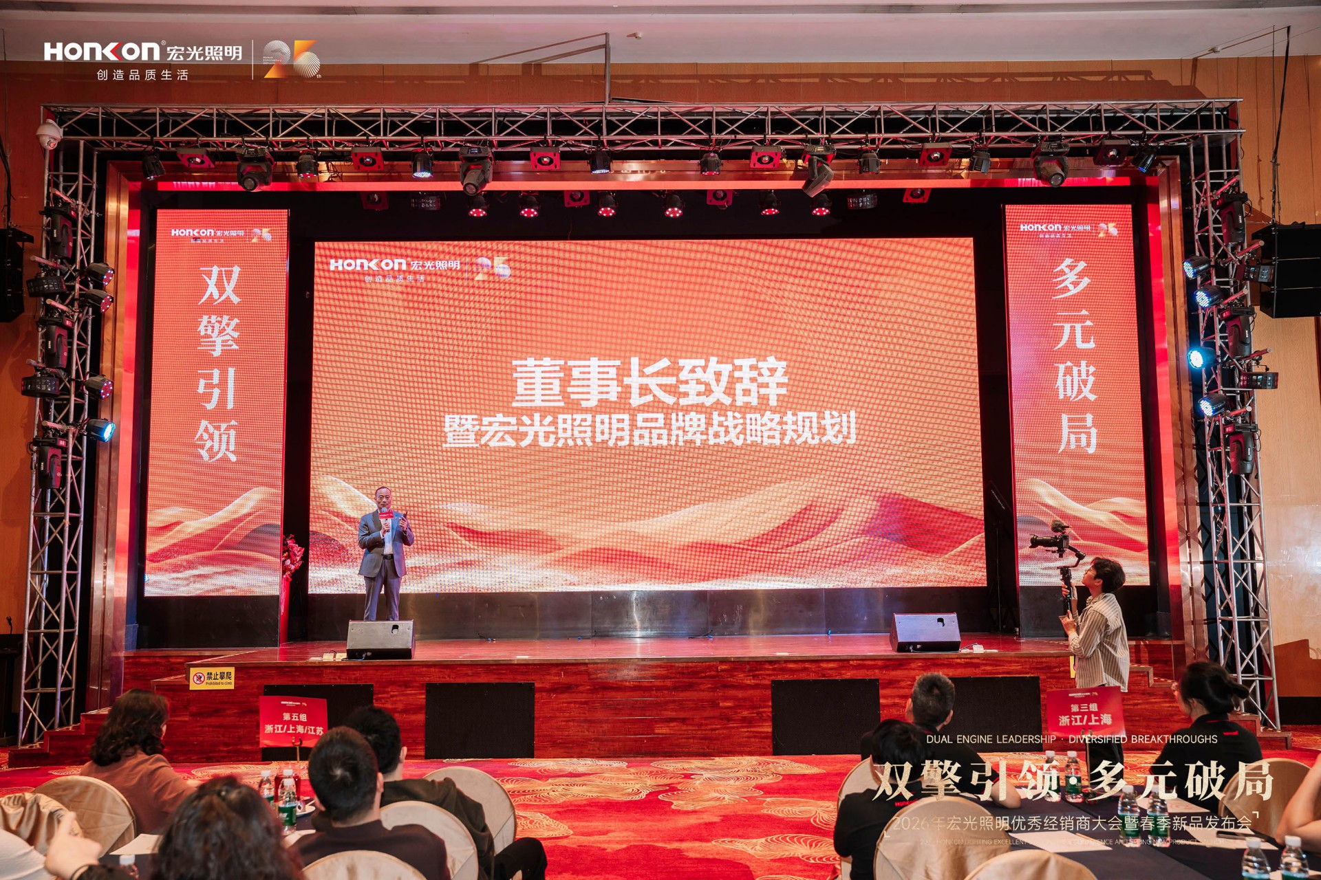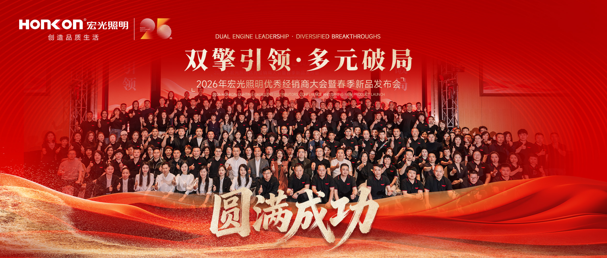 春回大地,万物竞发。在照明行业迎来新一轮发展机遇的早春时节,3月17日,“双擎引领·多元破局”2026年宏光照明优秀经销商大会暨春季新品发布会在灯都古镇盛大启幕。本次大会以“破局·升维·共赢”为主旨,来自全国的宏光家人再度聚首,共同聆听品牌在新周期下的战略强音,全面开启宏光以“双引擎多元化模式”驱动终端核心竞争力构建的崭新篇章。